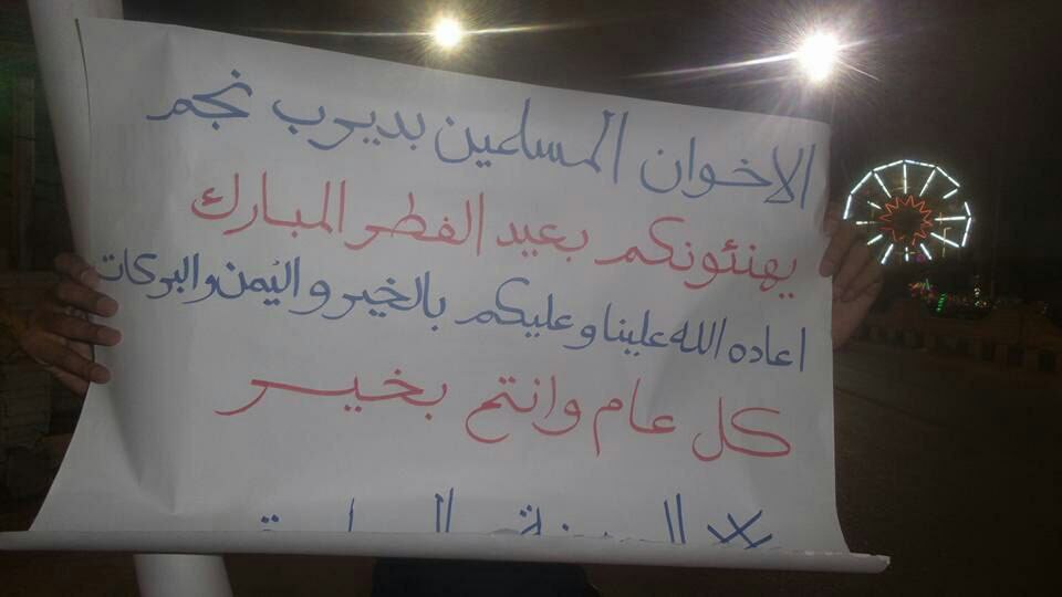نظَّم ثوار الإسكندرية والشرقية فعاليات ليلية عشية عيد الفطر المبارك؛ رفضًا للانقلاب العسكري وبيع جزيرتي تيران وصنافير، ضمن فعاليات أسبوع "صمودنا عيد"، الذي دعا إليه التحالف الوطني لدعم الشرعية ورفض الانقلاب.