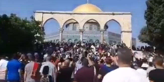 حيث انتفض المصلون من المسجد الأقصى المبارك عقب صلاة الجمعة اليوم مرددين الهتافات المناصرة لرسول الله صلى الله عليه وسلم والمنددة بما تفعله فرنسا من إساءة للنى الكريم.