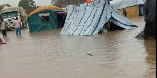 وأشارت اللجنة إلى أن مياه الأمطار غمرت مناطق الإيواء، ما أدى إلى تدمير الخيام والمأوى الهش الذي يحتمي به النازحون الذين يعانون من نقص الغذاء وانتشار الأمراض نتيجة الظروف الصحية المتردية.