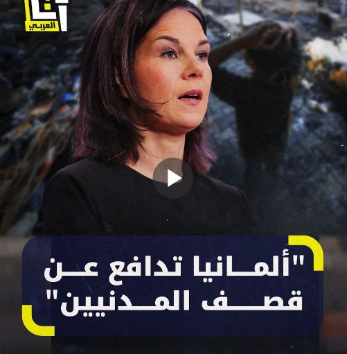 وكانت أنالينا بيربوك، وزيرة الخارجية الألمانية قالت: “”لن نخجل من استهداف المدنيين والمستشفيات لطالما هذا يوفر الأمن لإسرائيل وهذا جزء من التزاماتنا”.
