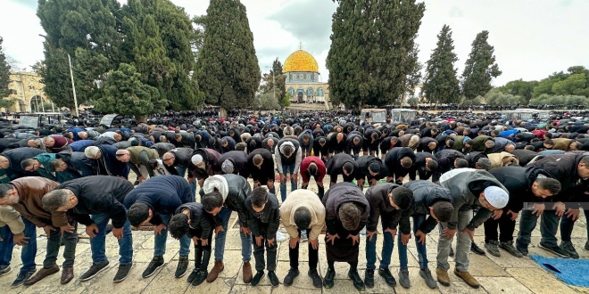 أدى آلاف الفلسطينيين صلاة الجمعة في المسجد الأقصى المبارك، في ظل الإجراءات العسكرية المشددة التي تفرضها سلطات العدو الصهيوني على الوصول إلى المسجد.