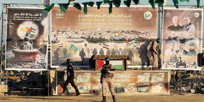 “لا هجرة إلا للقدس”.. رسائل “حماس” في موقع تسليم 3 رهائن بغزة