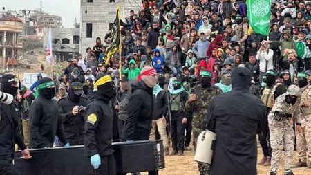ومن أبرز الشعارات المرفوعة “اليوم التالي طوفان”. فيما دلّت شعارات أخرى على أن المجموعات المشاركة في عملية التسليم شاركت بقوة في عملية “طوفان الأقصى”، من خلال شعارات “مجموعة موقع 8200”.
