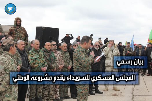 بدأت قصة تشكيل المجلس العسكري في السويداء  بسوريا مع نشر بيان على منصات التواصل الاجتماعي، أعلن فيه ثلاثة عشر ضابطاً سابقاً، تشكيل “المجلس العسكري”، تحت شعار “حماية المجتمع والأمن الوطني”، متبنّياًخطاباً يدعو إلى “دولة علمانية لا مركزية”.