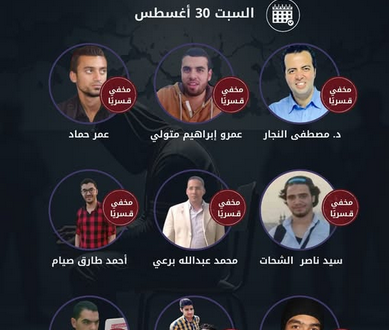 وبحسب رصد الشبكة المصرية لحقوق الإنسان -التي تجري تحديثا على آخر بياناتها- فإن من أقدم الأسماء المختفية قسريا، محمد صديق عجلان منذ (جمعة الغضب) 28   يناير 2011.