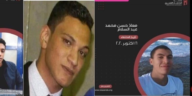 وتعرض معاذ حسن محمد عبد السلام ماضي، 26 سنة من السيوف –الإسكندرية للاختفاء القسري منذ 16 أكتوبر2020، حيث استوقفته السلطات الأمنية في كمين شرطة على طريق برج العرب، أثناء استقلاله سيارة برفقة أسرته عقب صلاة الجمعة في حوالي الساعة الواحدة ظهرا.