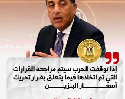 وادعى أن وقف الحرب قد يفتح الباب لمراجعة قرارات الزيادة، مؤكدًا أن تثبيت الأسعار السابقة كان سيكبّد الدولة خسائر ضخمة في ظل ارتفاع سعر النفط من 61 إلى أكثر من 93 دولارًا.