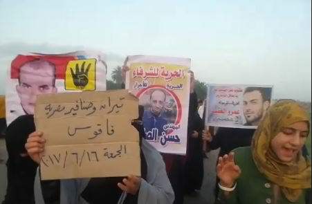 ردد الثوار الهتافات والشعارات المؤكدة على رفض التنازل عن أى جزء من أرض الوطن وعدم الاعتراف بما يعقده السيسى قائد الانقلاب وحكوماته الفاشلة من صفقات للتنازل عن مقدرات البلاد، فيما يعد جريمة خيانة عظمى، رافعين علم مصر بجوار صور الرئيس محمد مرسى وشارات رابعة العدوية وصور الشهداء والمعتقلين، فى مشهد ثورى تقدمه أسر الشهداء والمعتقلين وشباب الثورة الرافضين للفقر والظلم المتصاعد.