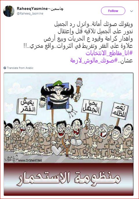 “سقوط مروع للسيسي وعصابته وخسارة أبدية لشعبيته التى طالما صدعونا بها”.. هكذا رأت “جياد الرهبة” وهي تعلق على هاشتاج #الانتخابات_بلح الذي أطلقه نشطاء كموجة مسائية للتعبير عن انتصار ...