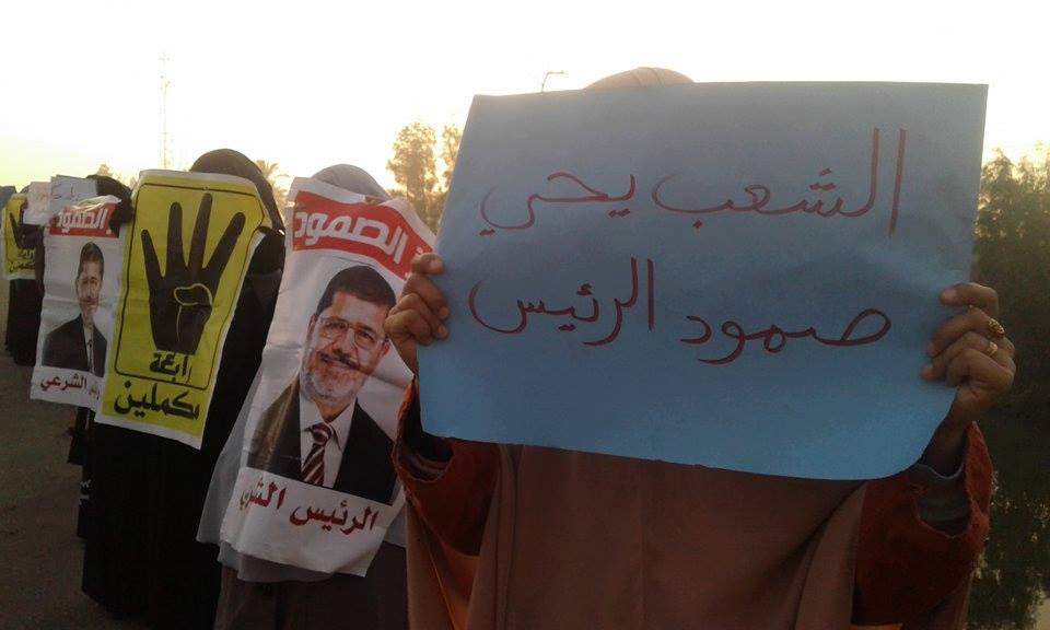 ورفعن علم مصر بجوار صور الرئيس محمد مرسى وشارات رابعة العدوية وصور الشهداء والمعتقلين، ولافتات تحمل عبارات التأكيد على تواصل النضال رغم تصاعد جرائم العسكر حتى تحقيق جميع أهداف الثورة وعودة مكتسبات ثورة 25 يناير.