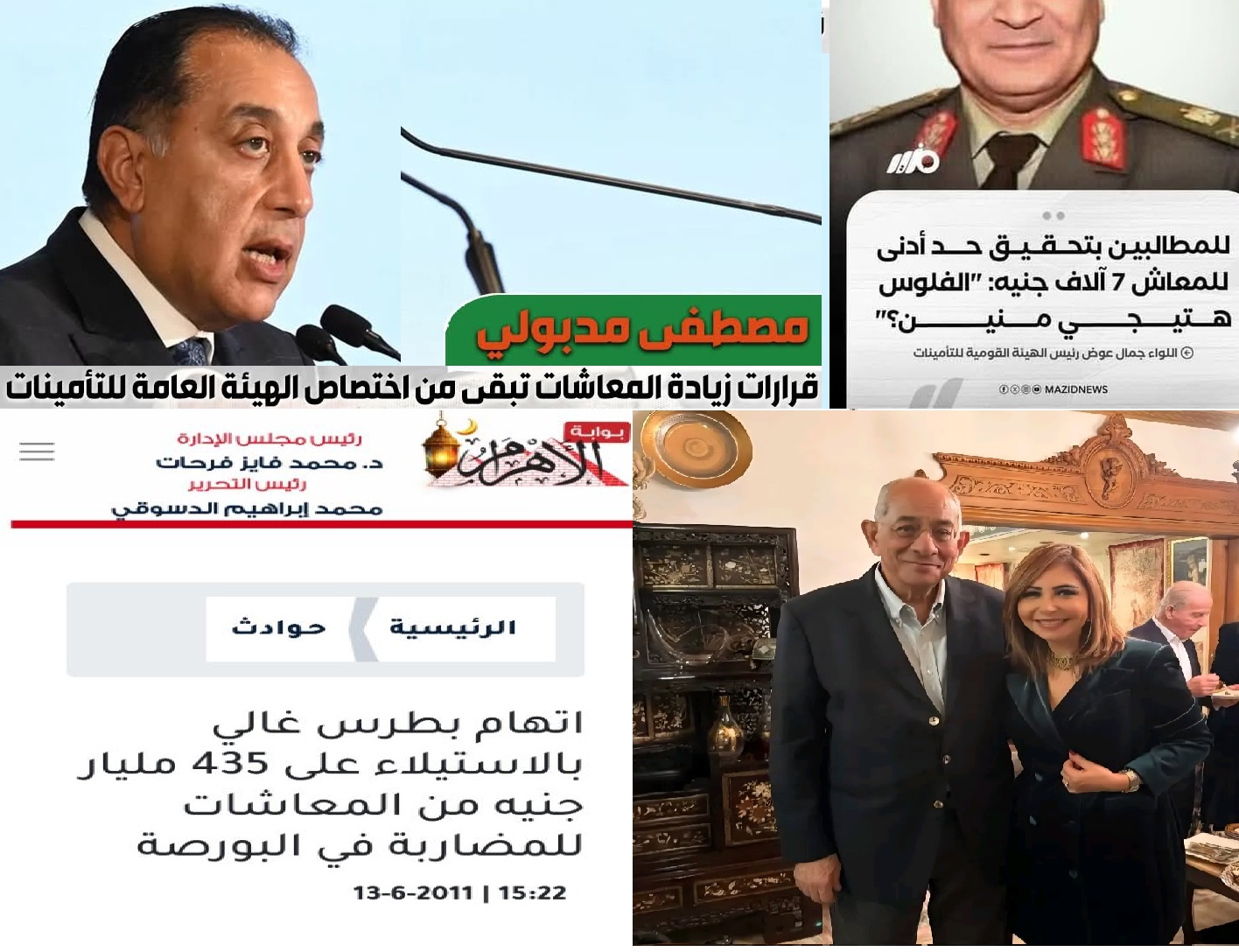 نقلت منصات محلية عن رئيس حكومة السيسي مدبولي قوله: إن "زيادة اصحاب المعاشات مش من اختصاص الحكومة وده اختصاص هيئة التأمينات" في حين علق جمال عوض رئيس هيئة التأمينات برد صادم قائلًا "هنجيب منين"؟.