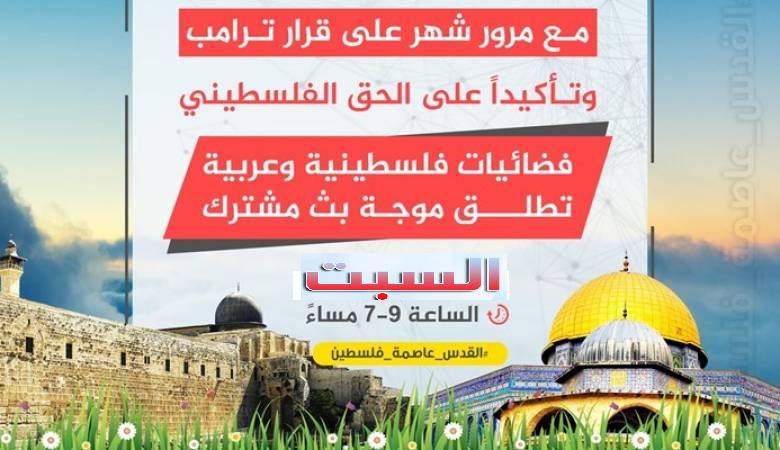أعلنت عدة قنوات فلسطينية وعربية عن إطلاق بث فضائي مشترك، اليوم السبت، للمشاركة في حملة إعلامية مناصرة للقدس، عقب مرور شهر على قرار ترامب باعتبارها عاصمة لدولة الاحتلال، ...